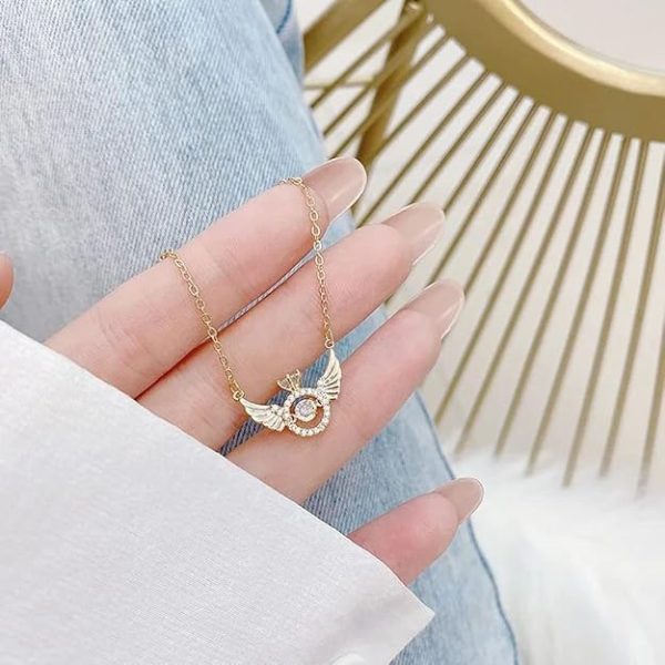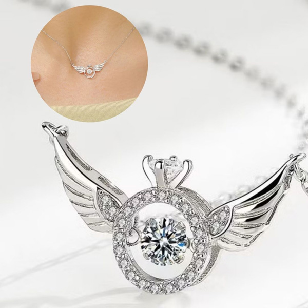 ANGELIOP vėrinys su spindinčiais angelo sparnais, papuoštais akmenukais ir judančiu cirkonio kristalu, simbolizuoja angelą, saugantį jūsų širdį. ✨💎
