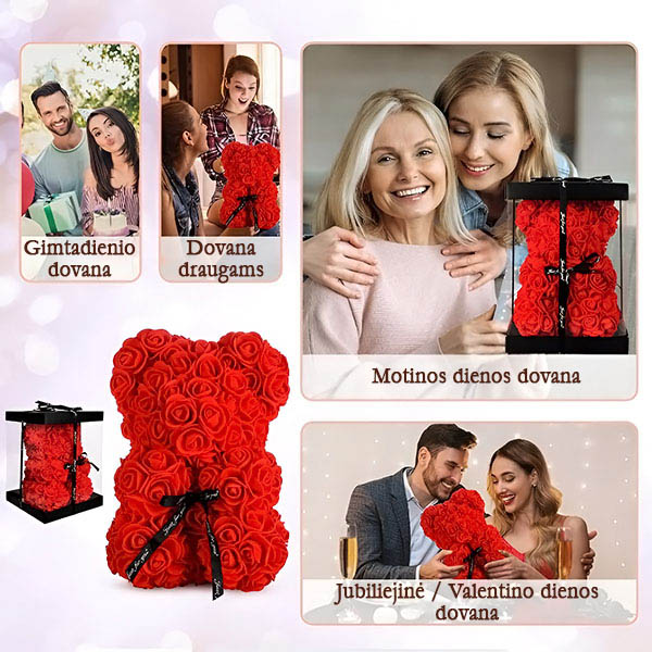 🎁 Nustebinkite ją romantišku meškiuku, pagamintu iš nevystančių rožių.