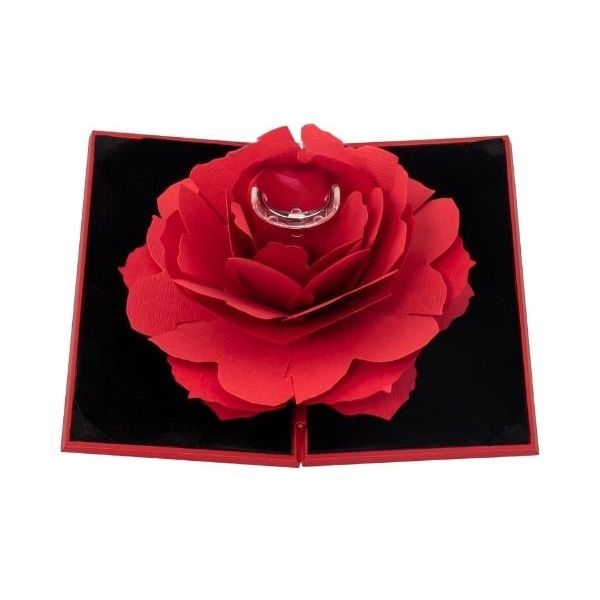 Iš aukštos kokybės medžiagų pagaminta plona dėžutė turi patvarų plastikinį vidų ir minkštą flanelę žiedui apsaugoti, o išorinė rožė pagaminta iš aukščiausios kokybės popieriaus, kad atrodytų tikroviškai ir būtų nepavaldi laikui. Dėl kompaktiško ir diskretiško dizaino ją galima lengvai įsidėti į palto kišenę, todėl tai puikus palydovas netikėtoms piršlyboms, jubiliejams ar ypatingoms dovanoms.