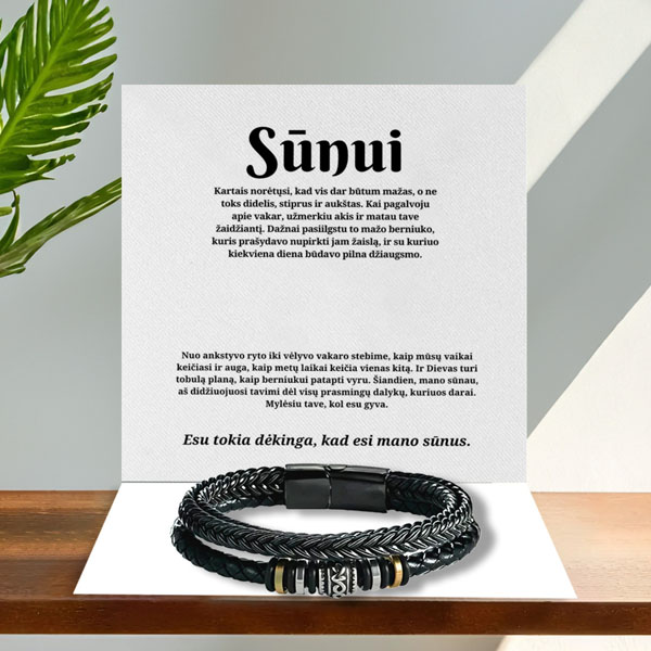 Įsivaizduokite jo šypseną, kai jis atidaro dovaną ir pamato šią elegantišką apyrankę. ✨ Šis nesenstantis papuošalas ne tik papuoš jo riešą, bet ir taps ilgalaikiu jūsų dėmesio ir meilės priminimu. Nesvarbu, kokia proga – gimtadienis, jubiliejus ar ypatingas gestas – apyrankė yra puikus pasirinkimas, kad dovanos gavėjas suprastų, kad jums tikrai rūpi!